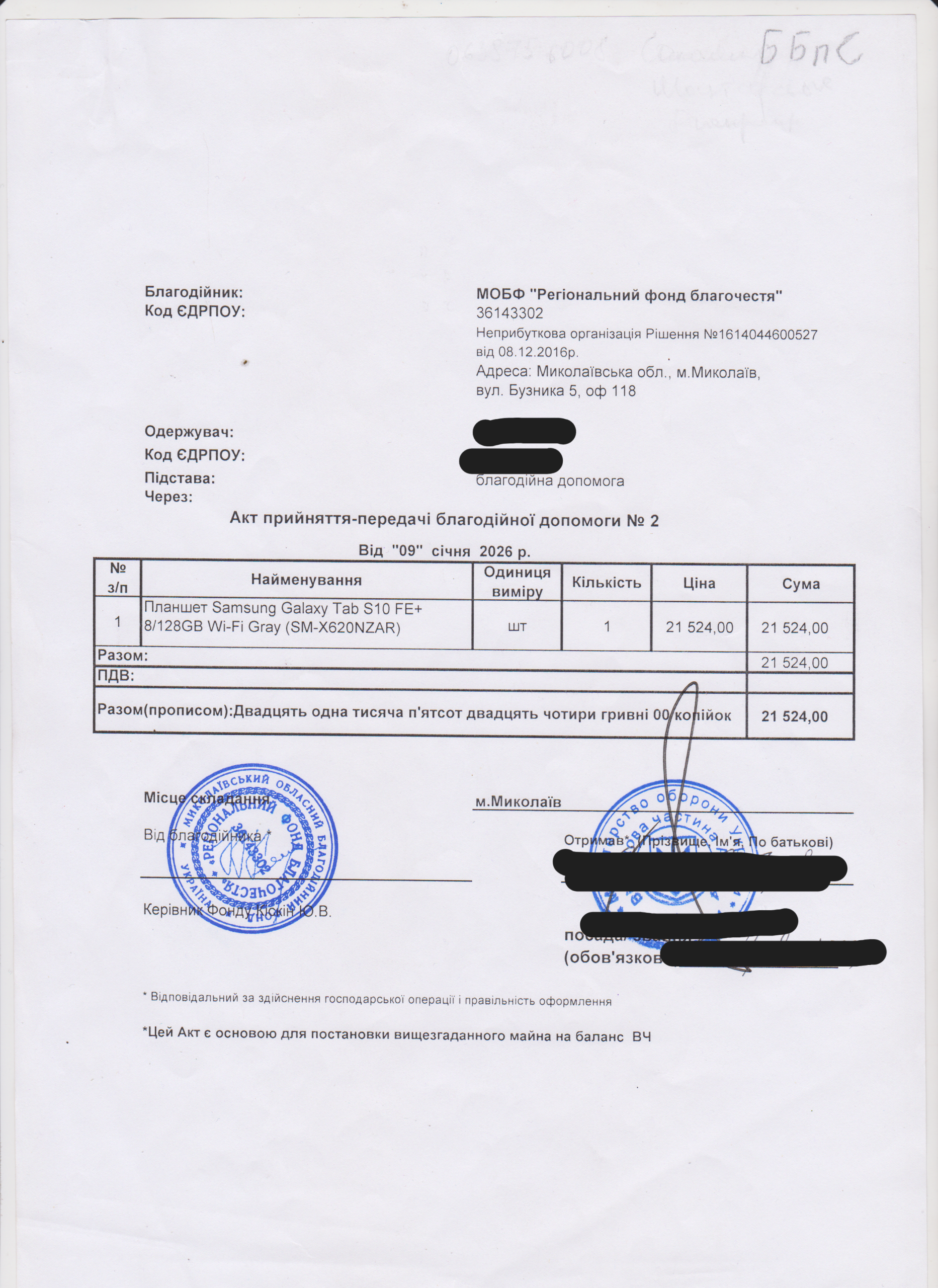 | 24/02/2025 | Tablets for air defense units | 2 | 13 998.00 | act |