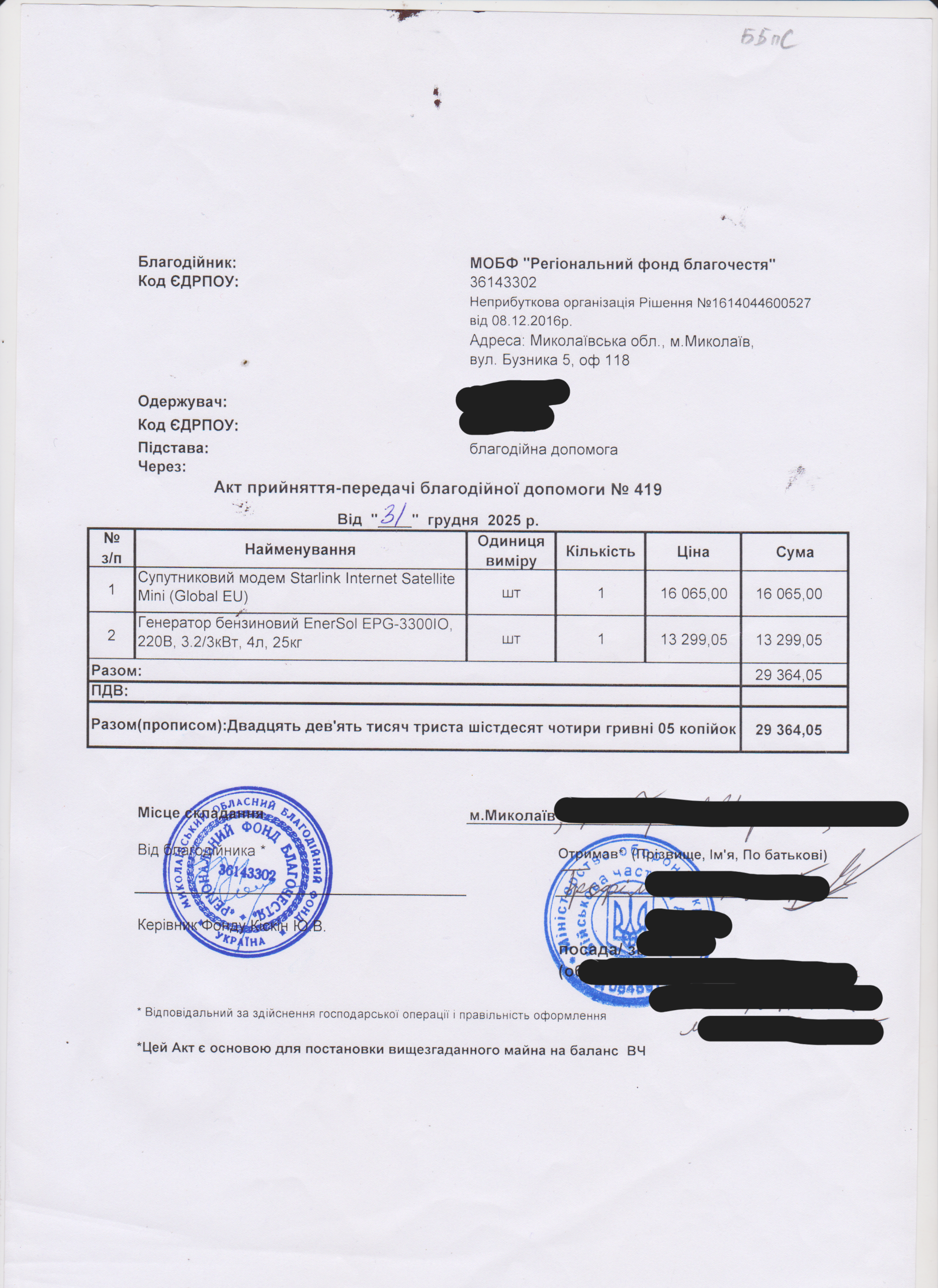 | 19/02/2026 | Starlink mini. Generator | 2 | 29 364.05 | act |