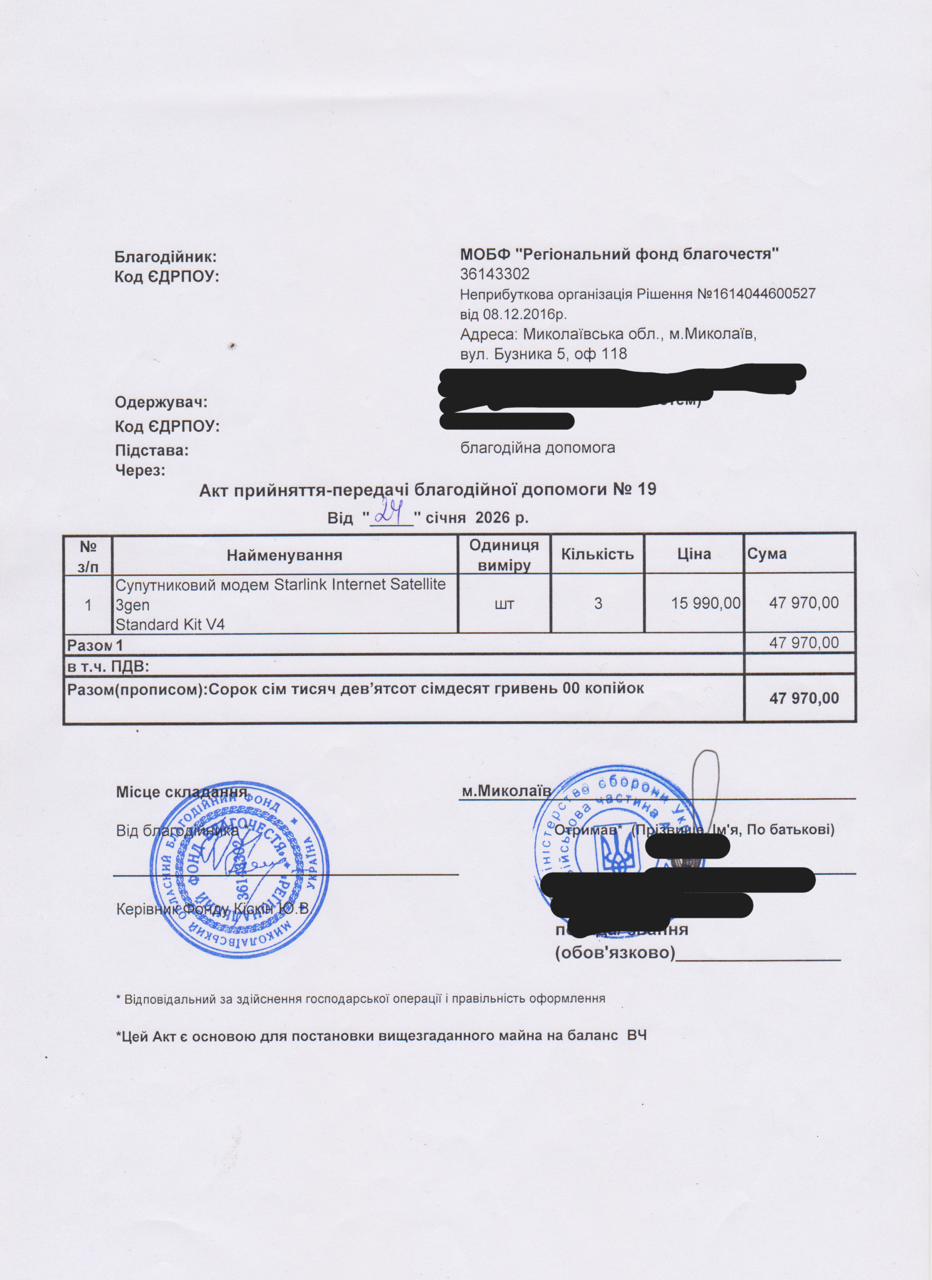 Each item we collect is essential to support our defenders in their daily work and help them ensure their safety and effectiveness in performing important tasks. Your donation will allow us to quickly and efficiently provide the necessary equipment that our military needs.