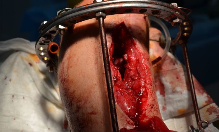 In August last year, Evhen was injured near Novoazovsk – he suffered a supracondylar nonunion fracture of the lower third of the humerus bone with a 20 square centimeter defect of bone tissue. Evhen’s elbow joint has been significantly damaged, and his hand has movement to only 15 ° – all as a result of articular fractures of the lower third of the humerus. To restore joint function to at least 70-80% and grow the bone, complex treatment using cellular technology is required. Within the first phase of his Bioengineering Rehabilitation for Wounded treatment the border guard underwent reparation to fracturing of the humerus, extrafocal transosseous osteosynthesis and sampling of cellular material (fibula bone fragments and red marrow). During Evhen’s basic operation in place of the left humerus defect autologous mesenchymal stromal cells were introduced.