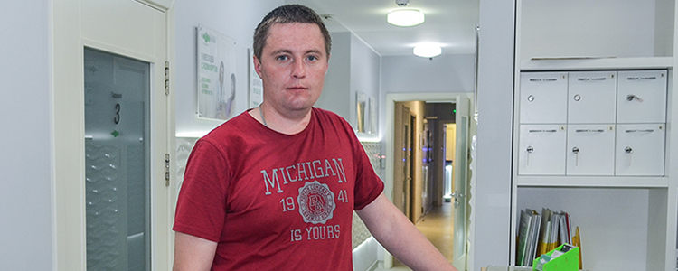 His fellow soldiers carried him to be transported by APC, provided first aid and took him to a hospital in Izium, where a bone fixation surgery was performed. Yuriy was transferred to a hospital in Kharkiv and later another in Vinnytsya, where the fracture was treated. However the fracture has not healed. An organization of soldiers’ mothers in Novovolynsk handed the fighter the contacts for coordinator of the Bioengineering Rehabilitation for Wounded project and the doctors of the iLaya Medical Center were ready to perform the complex treatment and put the hero back on his feet as soon as possible.