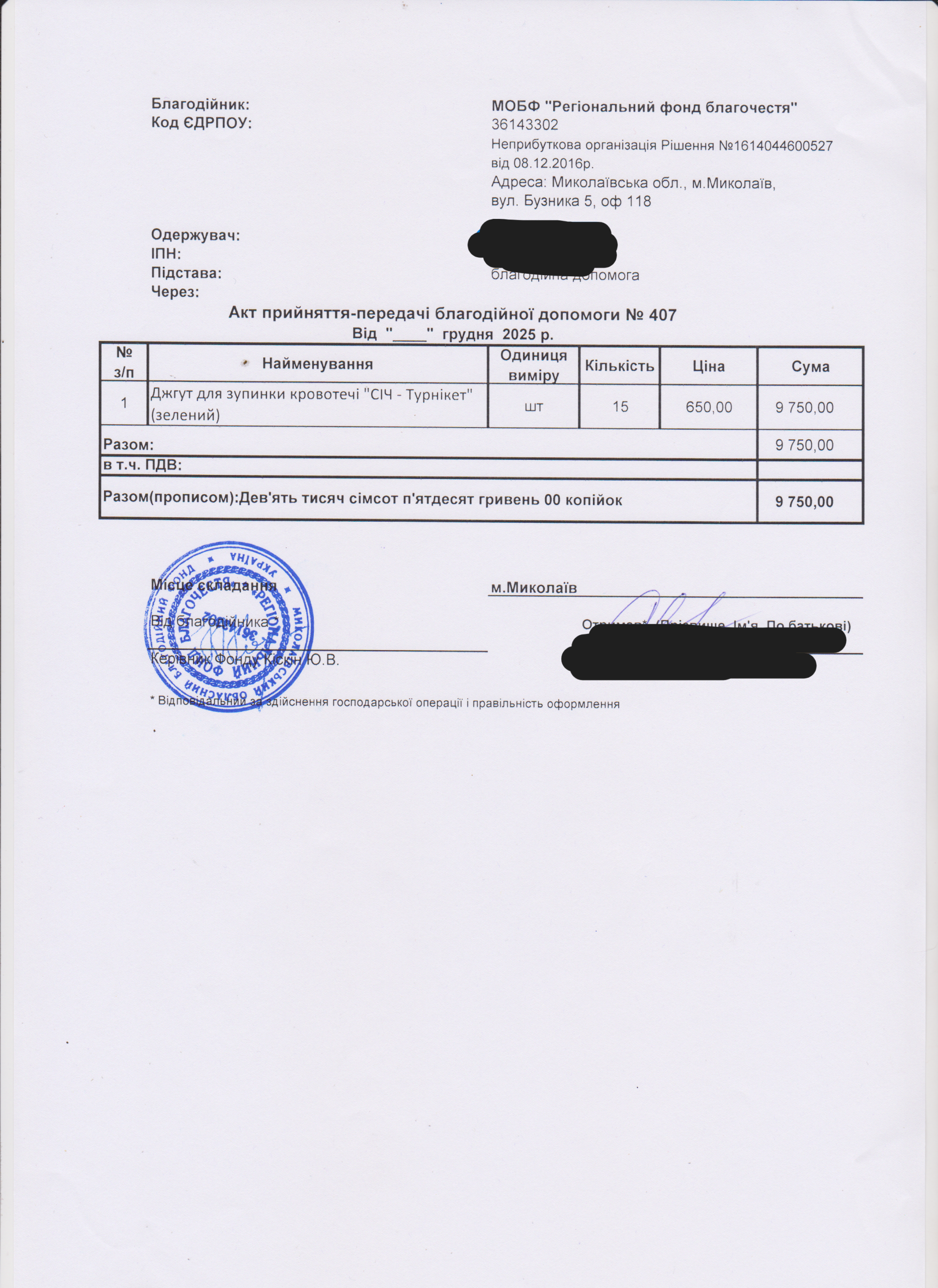 25/09/2025Джгут для зупинки кровотечі20 13 000.00Акт
