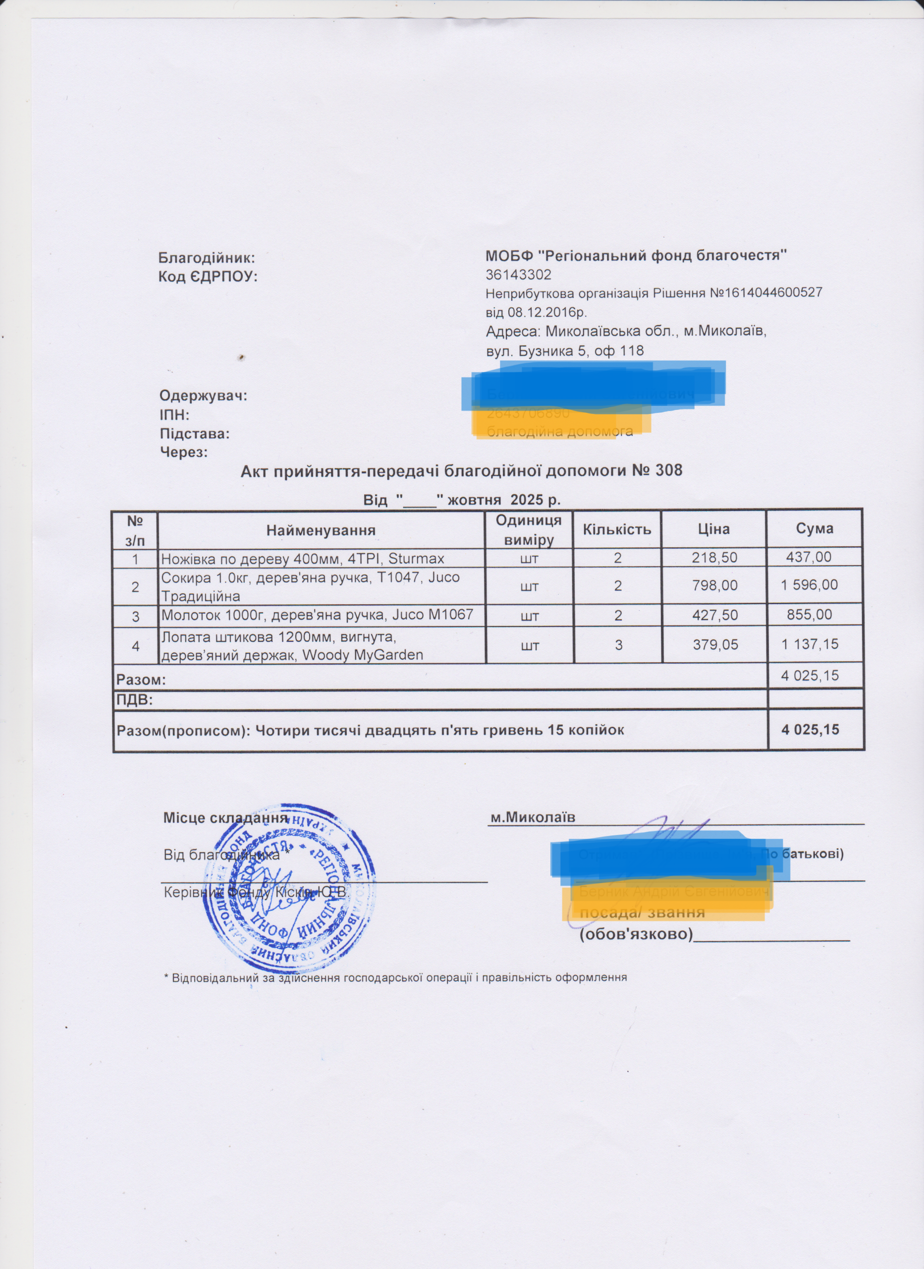 | 18/11/2025 | Інструменти | 9 | 4 025.15 | Акт |