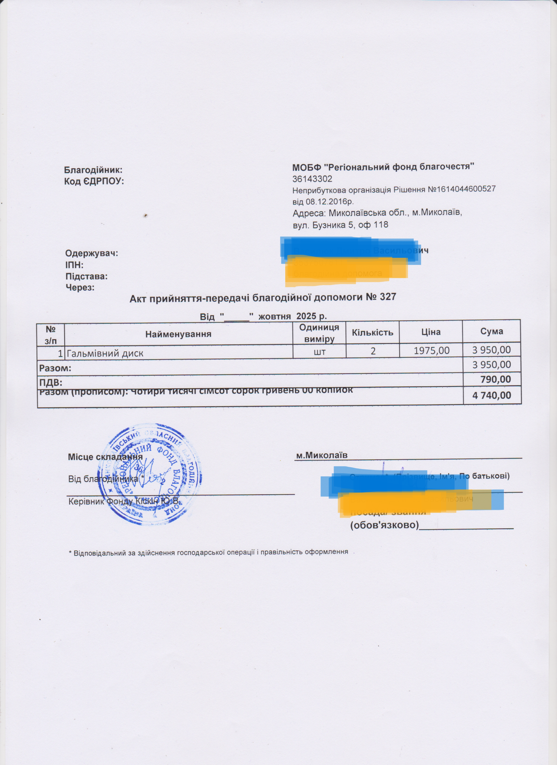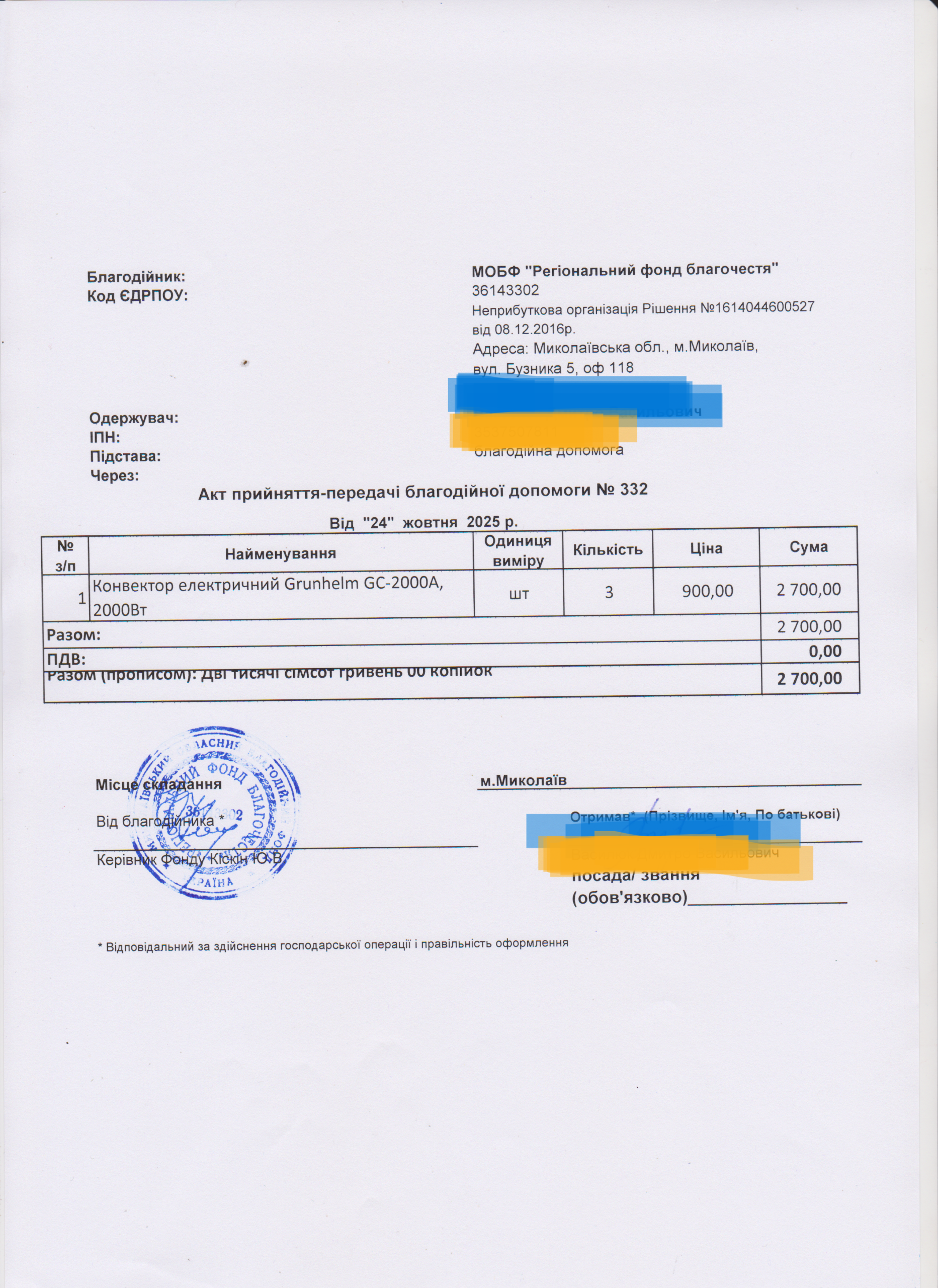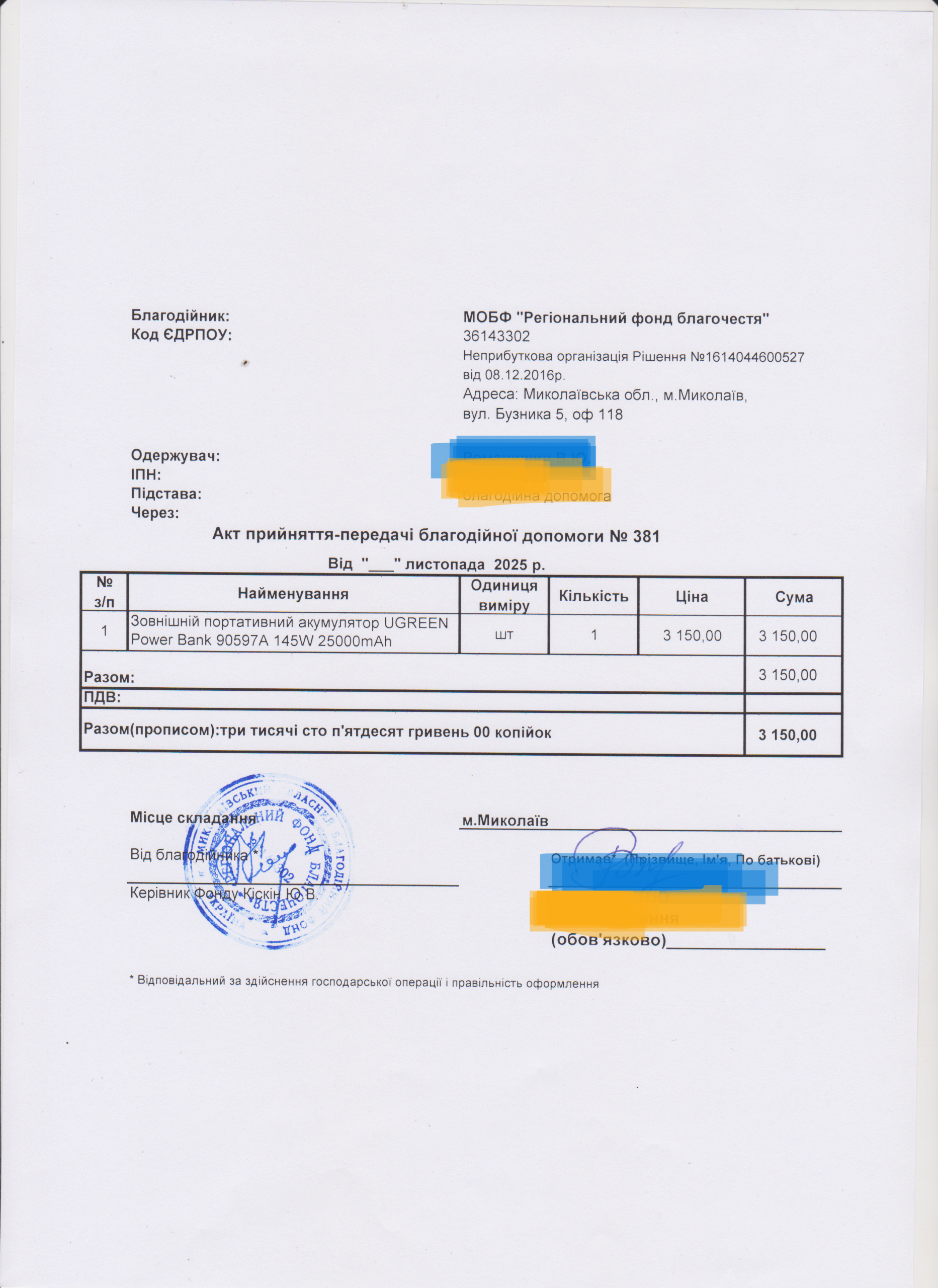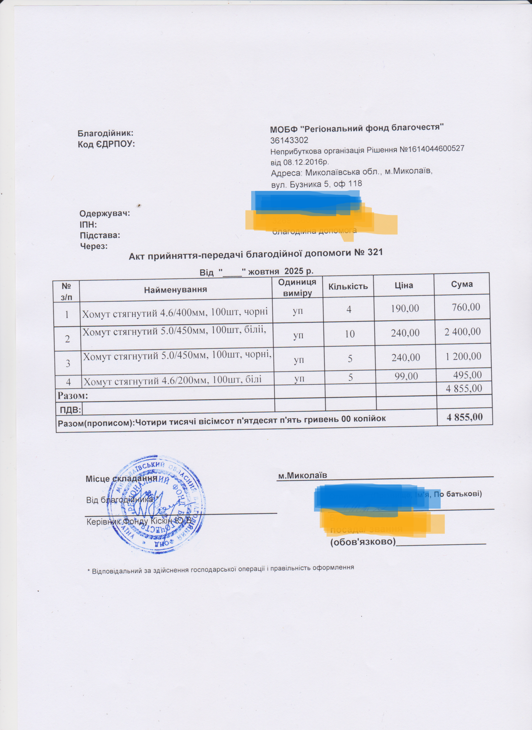 | 11/04/2024 | бронежилет | 1 | 12 850.00 | закуплено та передано |