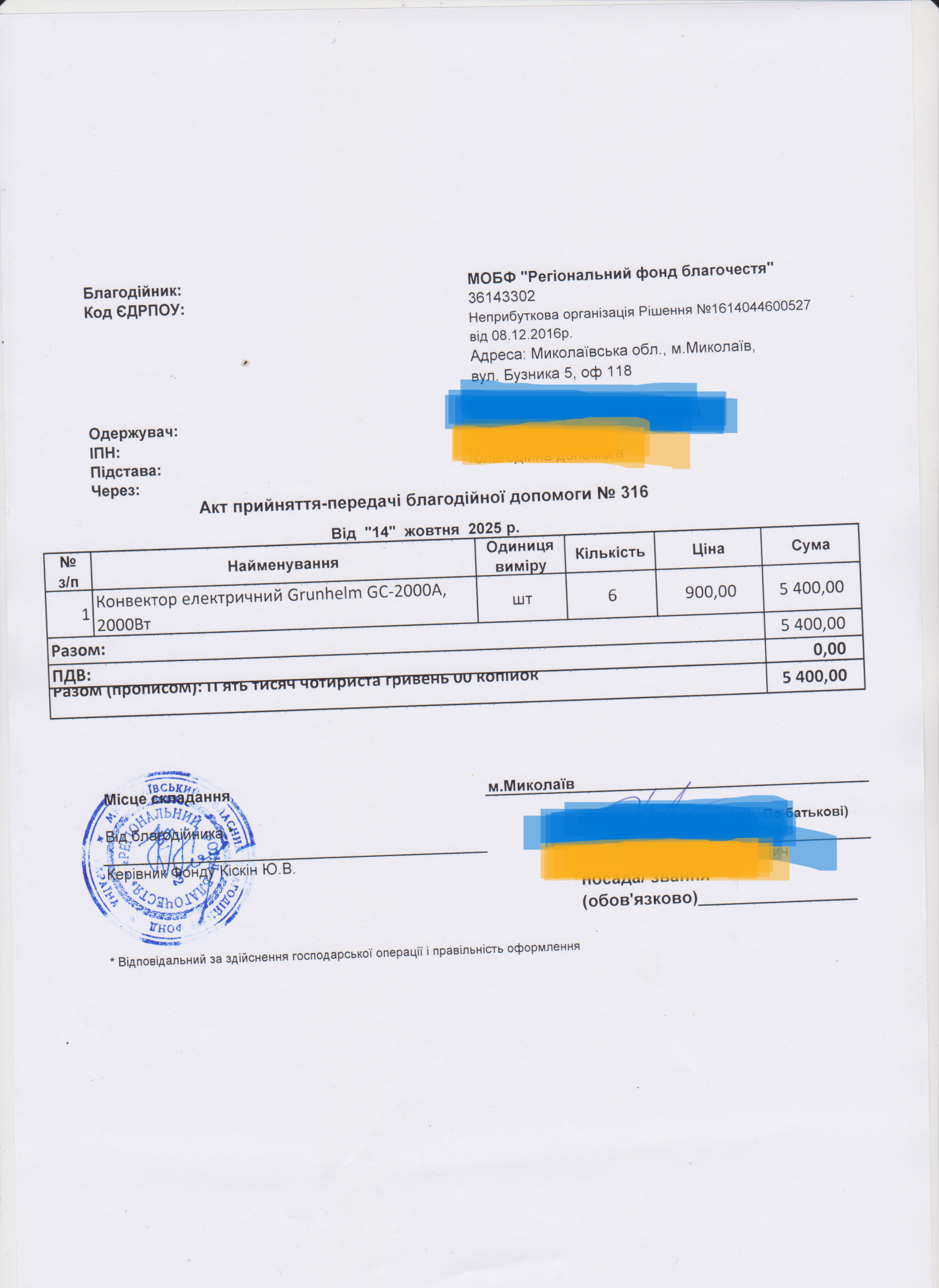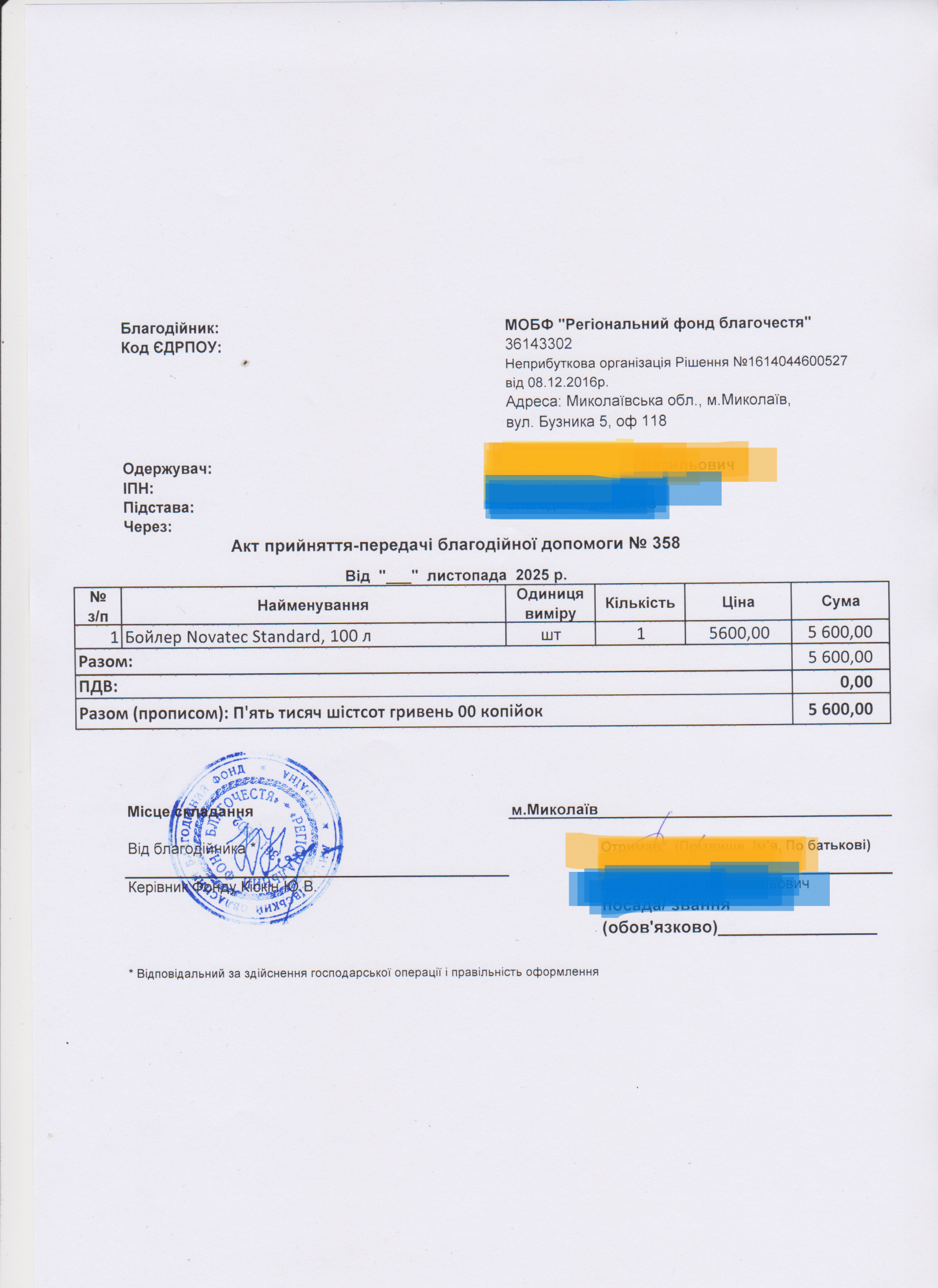 | 22/02/2024 | речі | 7 | 6 150.00 | закуплено та передано |