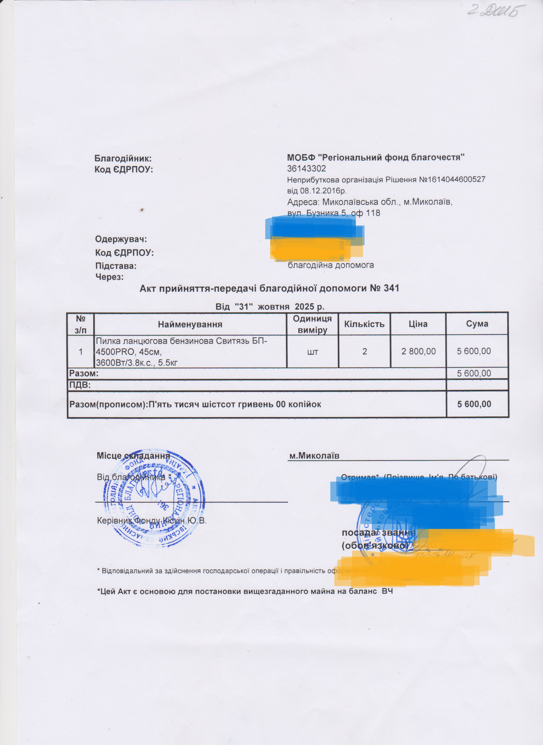 | 29/09/2025 | Бензопила, ланцюг, мастило | 4 | 4 826.00 | Акт |