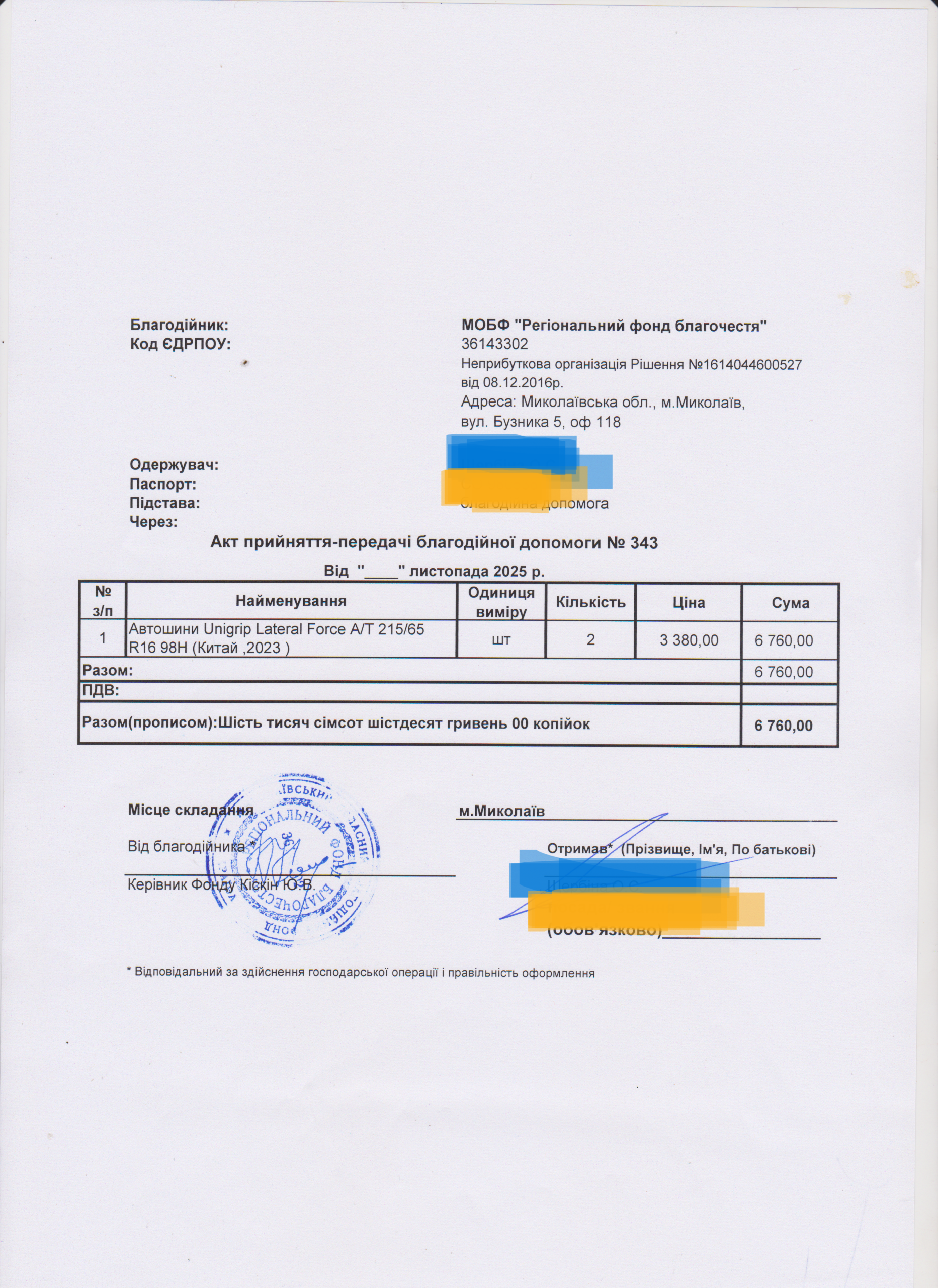 | 18/11/2025 | Шини | 2 | 6 760.00 | Акт |
