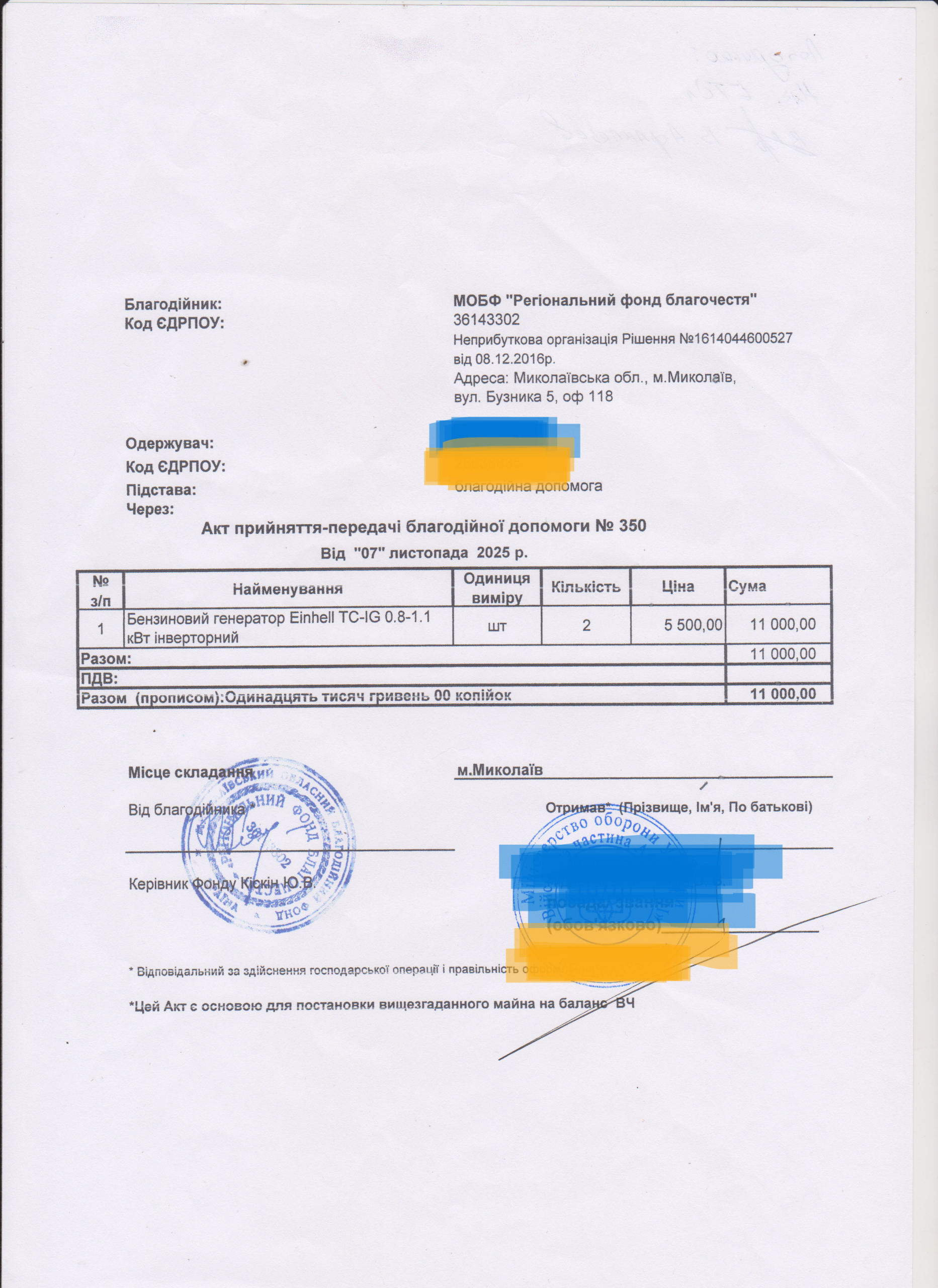 | 18/11/2025 | Генератор | 2 | 11 000.00 | Акт |