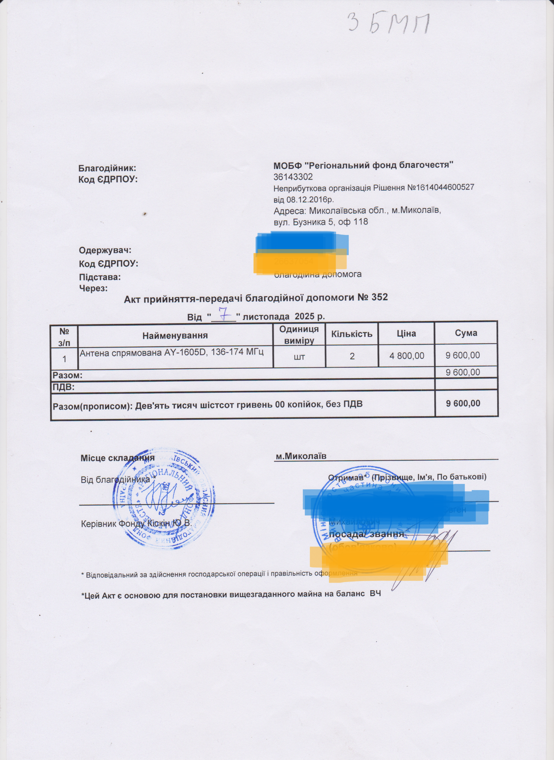 | 18/11/2025 | Антена | 2 | 9 600.00 | Акт |
