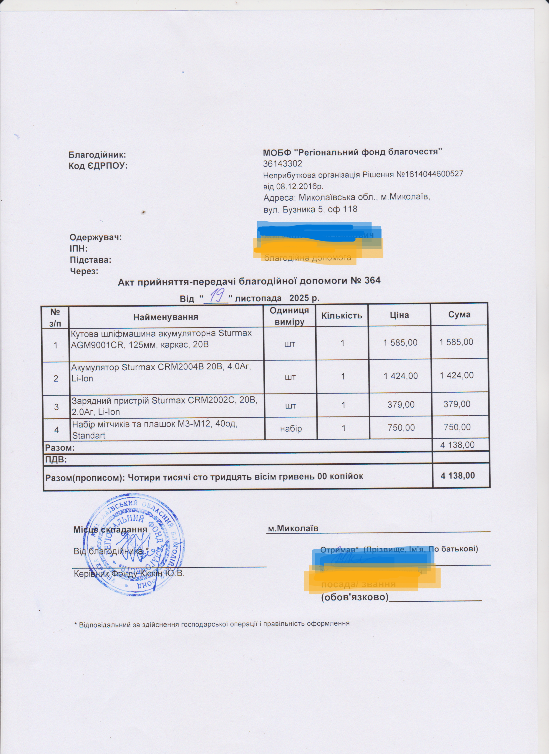 | 12/12/2025 | Інструменти | 4 | 4 138.00 | Акт |