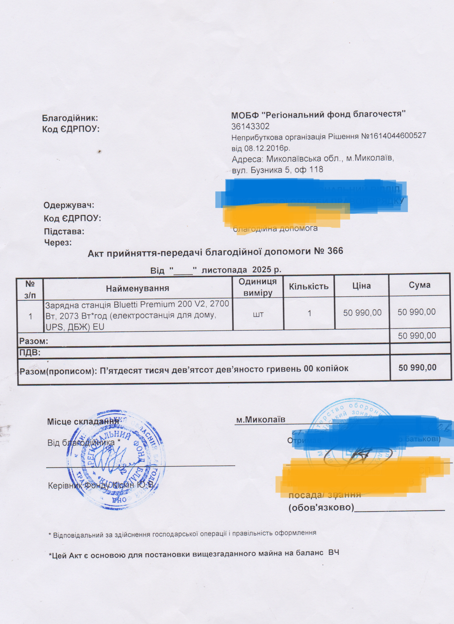 | 12/12/2025 | Зарядна станція Bluetti | 1 | 50 990.00 | Акт |