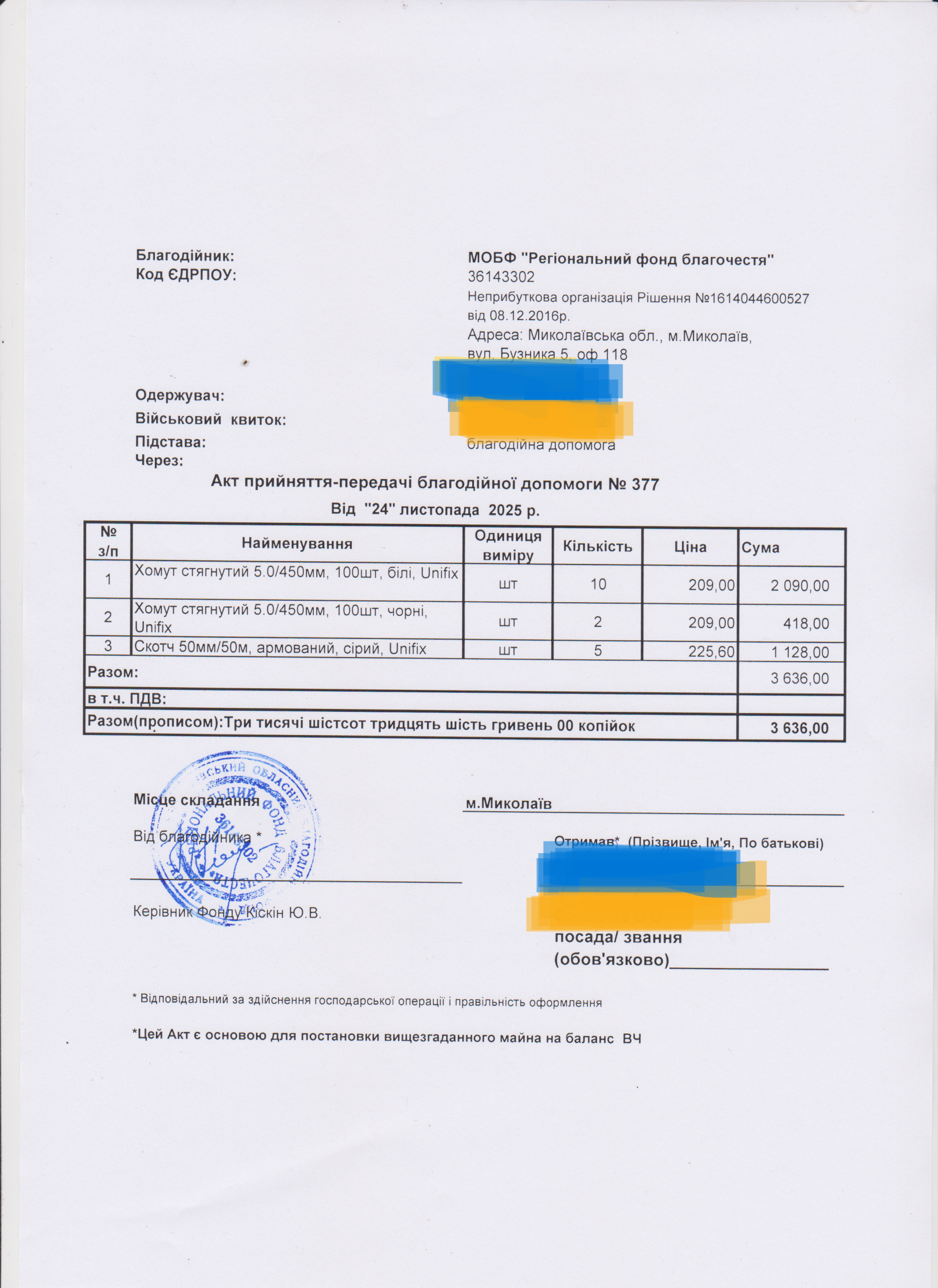| 22/02/2024 | речі | 3 | 1 700.00 | закуплено та передано |