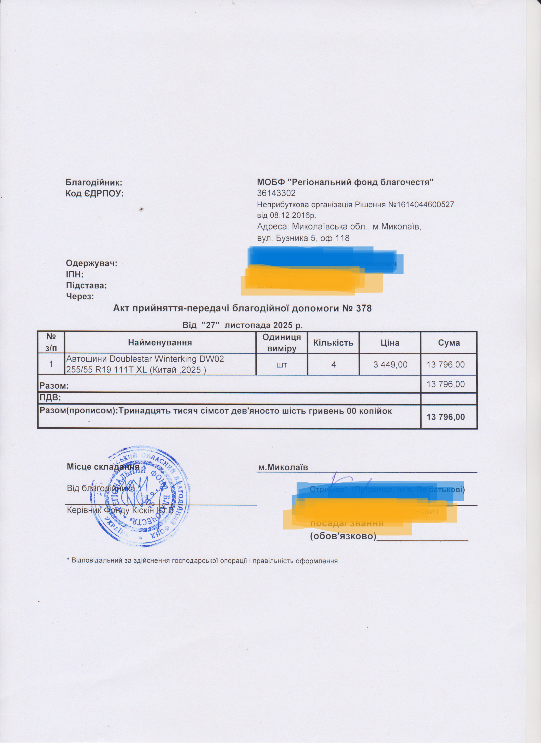 | 12/12/2025 | Шини | 4 | 13 796.00 | Акт |