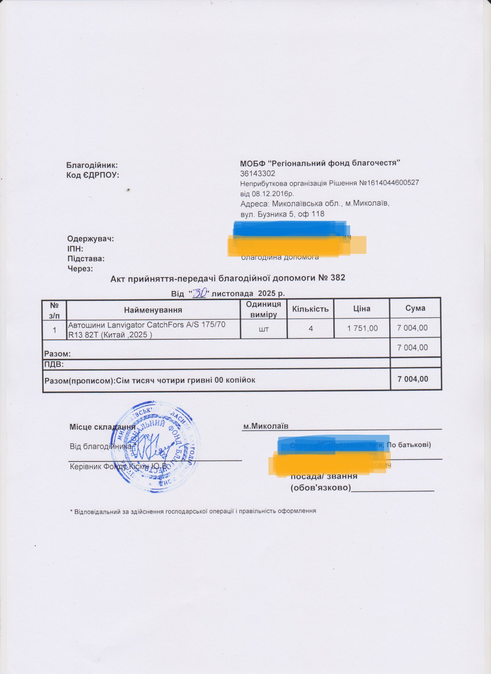 | 12/12/2025 | Шини | 4 | 7 004.00 | Акт |