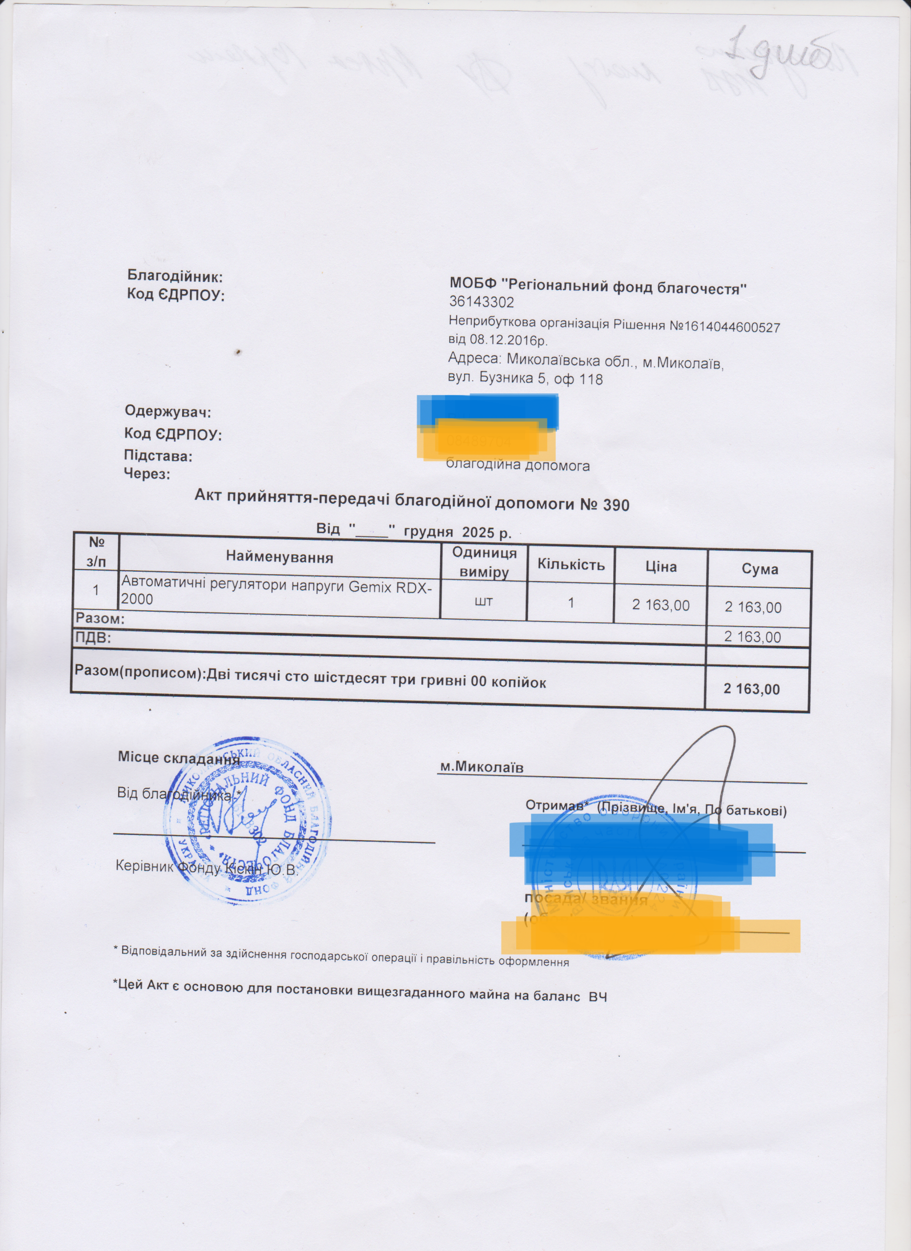 | 12/12/2025 | Регулятор напруги | 1 | 2 163.00 | Акт |