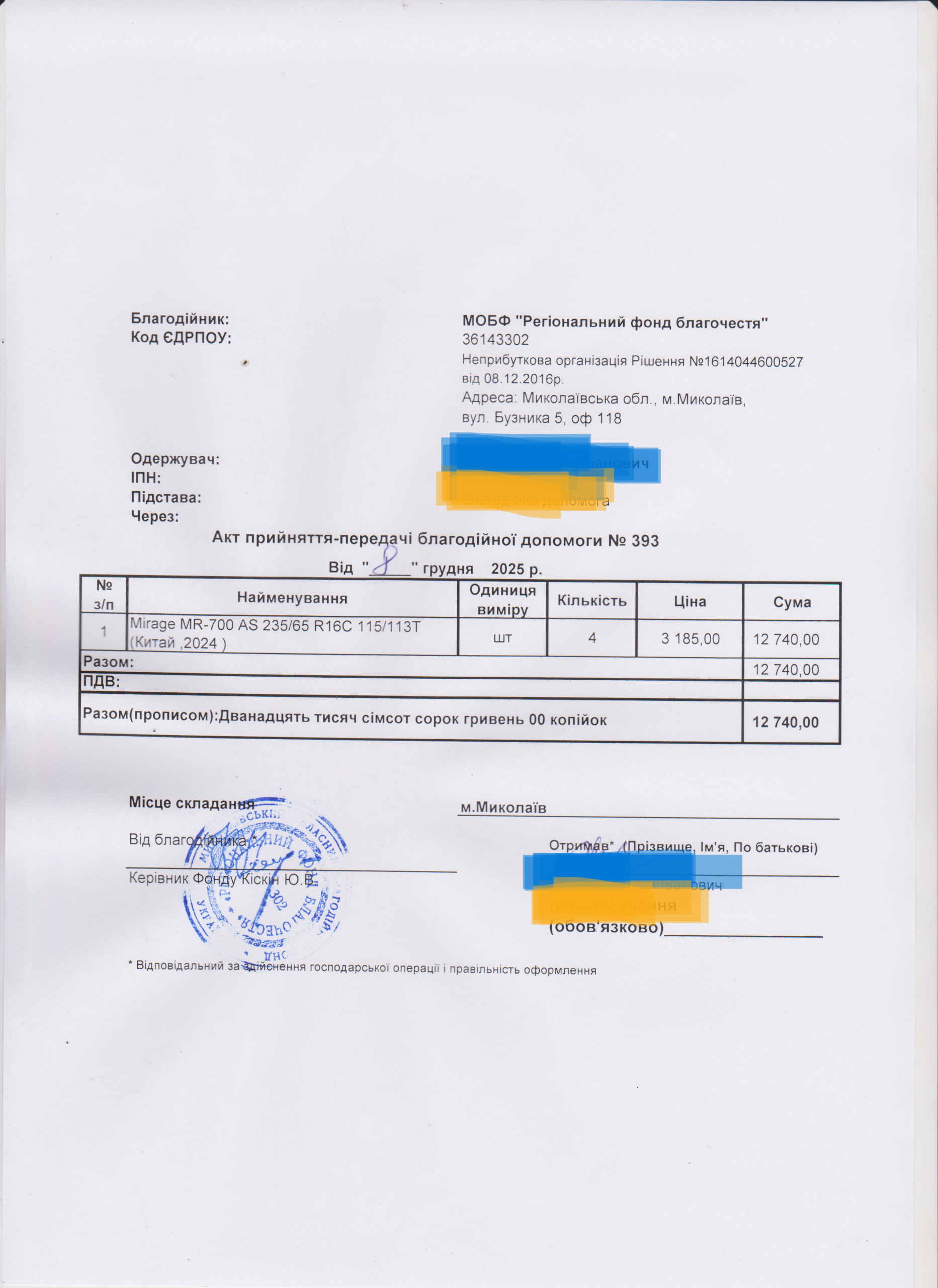 | 12/12/2025 | Шини | 4 | 12 740.00 | Акт |