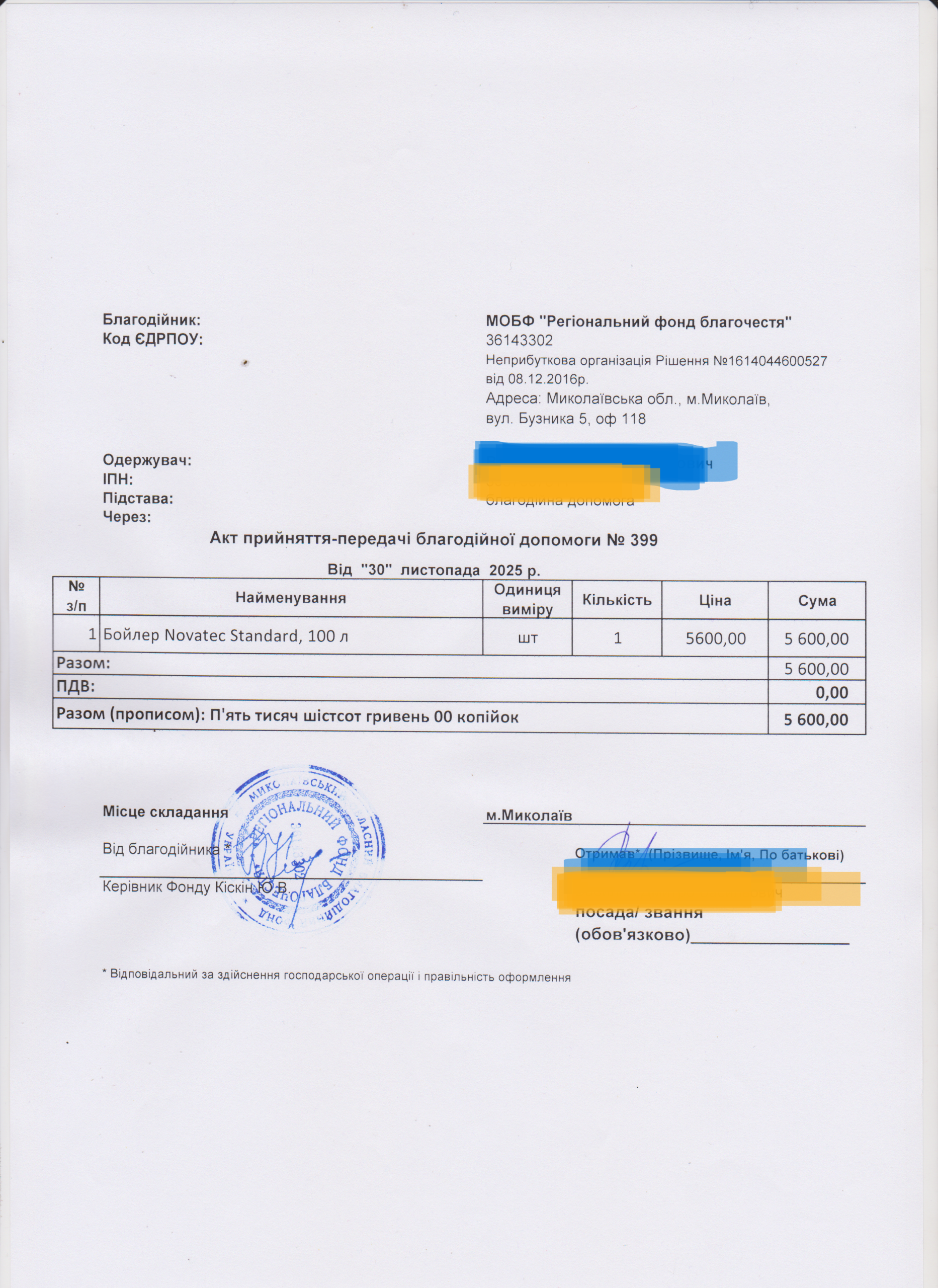 | 12/12/2025 | Бойлер | 1 | 5 600.00 | Акт |