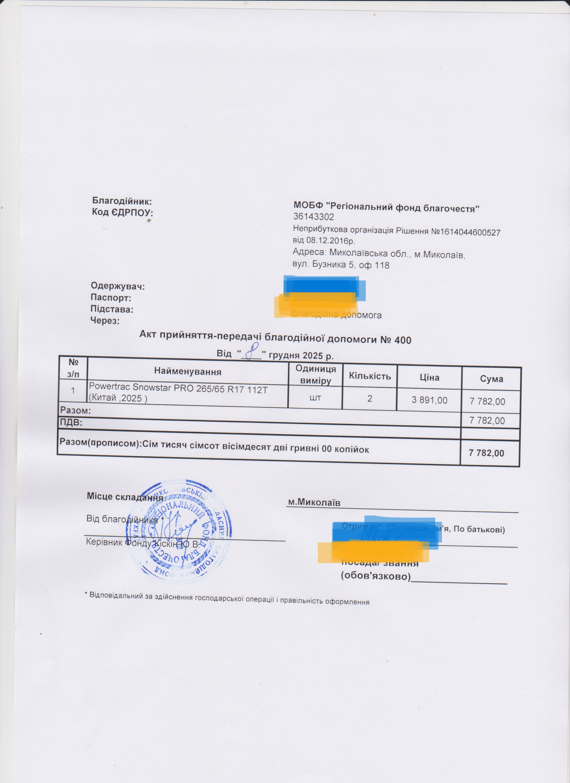 | 12/12/2025 | Шини | 2 | 7 782.00 | Акт |