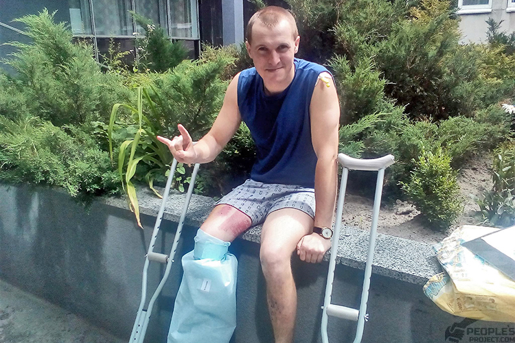 Петро ще трішки прибитий наркозом. Ще б пак – адже лише вчора він пережив ще одну, вже четверту за місяць складну операцію. Лікарі інтенсивно роблять пластику за пластикою: поки рана свіжа, фахівці поспішають відновити та наростити якнайбільше м’яких тканин, закрити розверсту поверхню розірваної стопи.