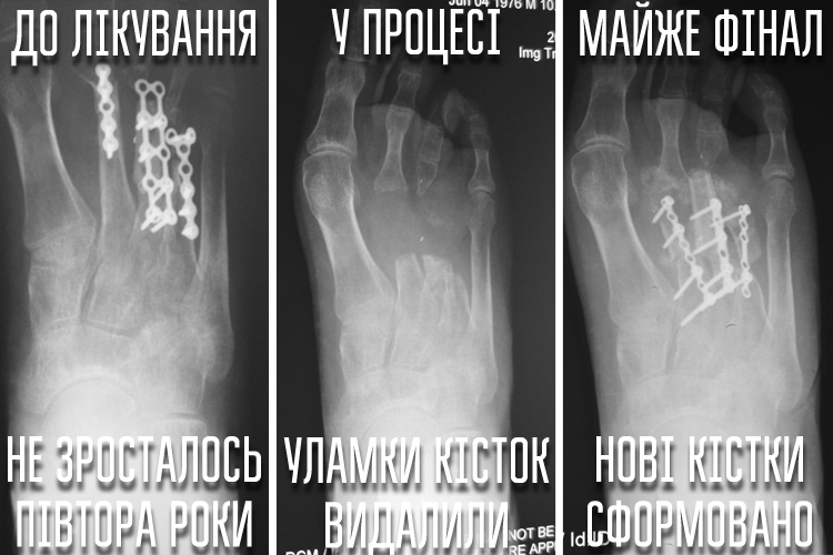 На останньому – клітини за три місяці сформували нові кістки і опорну площину стопи
