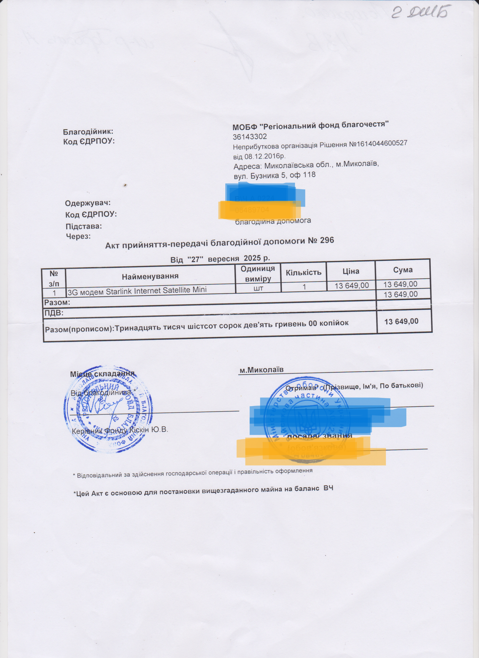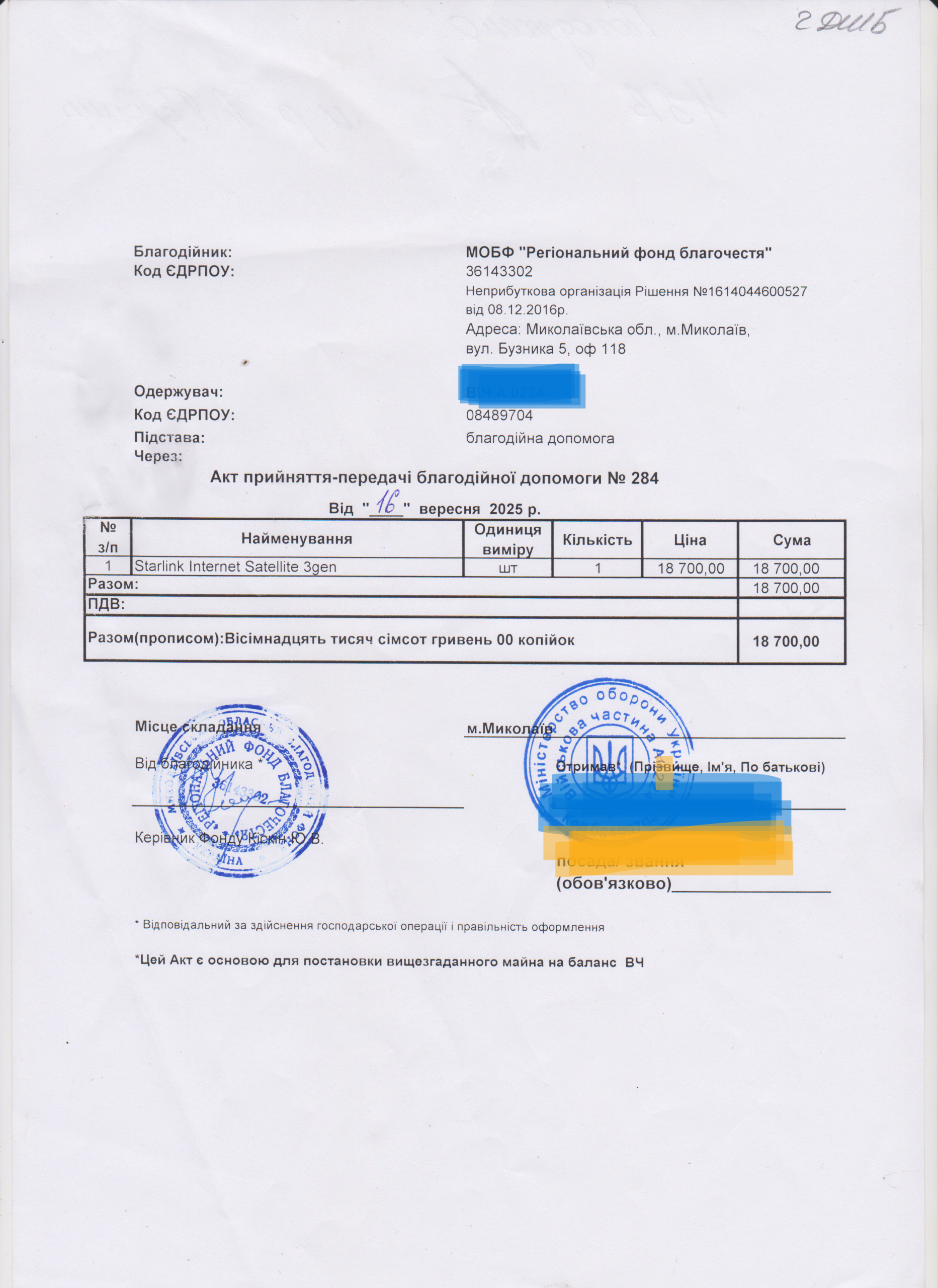 06/03/2024Starlink 1 23 000.00закуплено та передано